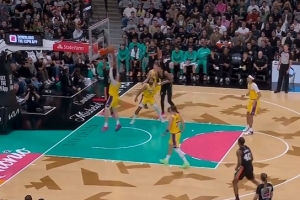 希罗和公牛吉祥物比赛半场背投 后者一击命中让希罗“临阵退缩”