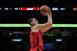 本场比赛,约维奇出战26分钟,12中7,三分8中5,砍下22分3篮板4助攻,正负值高达+24!