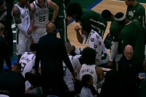 不知道球碰筐了?字母哥摘前场板没等犯规 最终补篮被帽+被绝杀