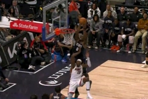 真敢打!埃奇库姆压最后一攻 强突顶着两个人拉杆左手压哨上篮
