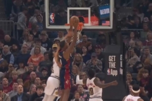 黄雀在后!韦尔斯篮下接球起身要扣 斯玛特追防送钉板大帽