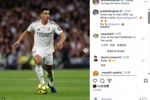 贝林厄姆也在赛后晒出本场照片,配文写道:“以一种很棒的方式开启2026年,贡萨洛的帽子戏法太精彩了!”