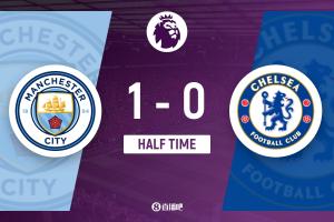 半场结束,曼城暂1-0切尔西。