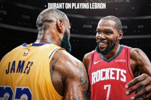 赛后,杜兰特接受了记者采访。谈到詹姆斯,他说道:“我觉得他为伟大树立了一个标准,对于比赛的准备,对比赛的热爱,对于比赛的道德准则,我对我们之间的每一次对决都心存感激。”